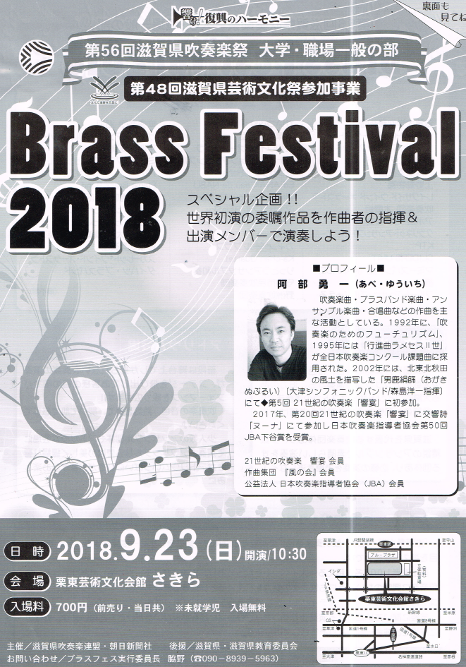 | 「千の松明」〜大百足討伐伝説〜 完成しました。 滋賀県野洲市立野洲中学校吹奏楽部委嘱作品 |