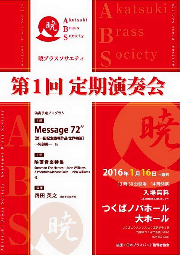 | 「Message 72"」(72秒のメッセージ)〜英国式ブラスバンドための〜 完成しました。 暁ブラスソサエティ委嘱作品 |