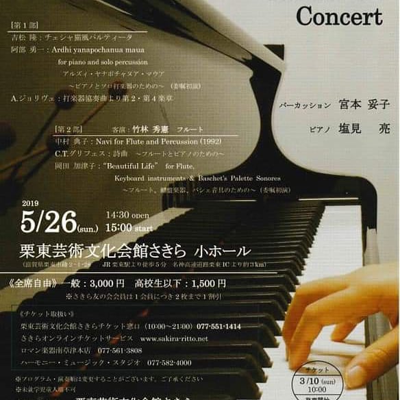 | 『織茂学と10人の法人作曲家によるピアノリサイタル』にて演奏して頂きます。 ■ 日時:6/1(日) 会場/13:00 開演/13:30 一般2,000円 高校生以下1,500円 ■ 会場:文京シビック 小ホール |